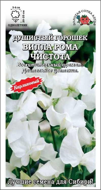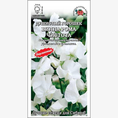 Горошки серии Villa Roma характеризуются обилием соцветий и продолжительным цветением, а компактная форма куста позволяет использовать их не только для создания бордюров, клумб и рабаток, но и для посадки в вазоны, горшки, подвесные кашпо и ящики с последующим оформлением патио-двориков, террас и веранд, балконов и окон. Белоснежные цветки изящной мотыльковой формы, собранные в простые кисти по 3-4 шт, источают восхитительный тонкий аромат. Прекрасно подходит для составления миниатюрных букетов. Сочетание карликовых и высокорослых сортов позволит каждый уголок сада сделать благоухающим.