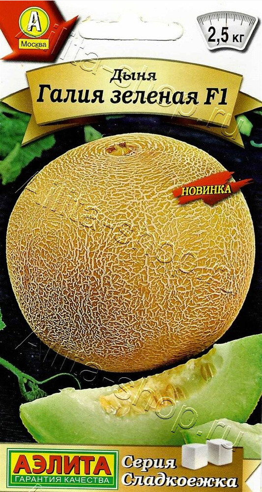 Урожайный гибрид с превосходными вкусовыми качествами. Созревает через 55-60 дней после высадки рассады на постоянное место. Плоды округлой формы средней массой 2-2,5 кг, с жёлто-оранжевой коркой, покрытой светлым сетчатым рисунком. Мякоть отличается плотной структурой, на вкус сочная и очень сладкая. Обладает яр ким ароматом, окрашена в зеленовато- желтый цвет, семенная камера небольшая. Рекомендуется использовать в свежем виде как десерт, для приготовления повидла и цукатов.
