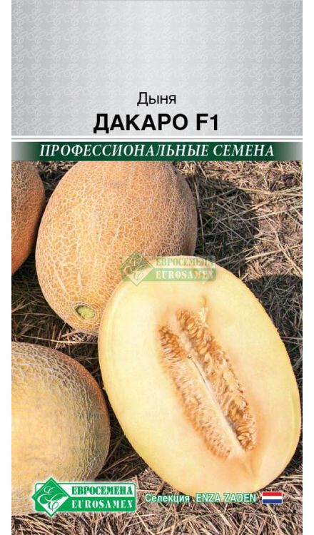 Дыня — не только вкусное лакомство, но ещё и кладезь витаминов и минералов, которые могут помочь восстановить полезные запасы человеческого организма. Дакаро F1 -эталон раннеспелости и вкусовых качеств, относится к сортотипу Ананас, идеально подходит для получения ранней продукции рассадным способом, в том числе при выращивании под укрывным материалом. Может использоваться для прямого посева в основном сегменте. Отличная способность растения к регенерации дает возможность продлить период сбора урожая. Плоды овальные, превосходного качества желто-оранжевые с красивой сеточкой, белой нежной мякотью и высоким содержанием сахаров, массой 1,5-2,0 кг. Сильный, приятный аромат великолепно дополняет прекрасные вкусовые качества. Гибрид отличается устойчивостью к фузариозу и настоящей мучнистой росе, сохранностью товарного вида плодов в течение 30-40 дней после съема.