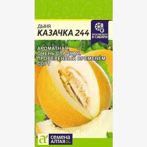 Среднеспелый (70-95 дней) сорт. Растение длинноплетистое, плод овальный, массой 1,2-1,8 кг. Поверхность гладкая или слабо-сегментированная, ярко-желтого цвета. Мякоть белая, плотная, сочная, сладкая. Место посадки: предпочитает плодородные рыхлые нейтральные почвы. Размещают после капусты, лука, бобовых. Не рекомендуется сеять после других растений семейства тыквенных (тыква, огурец, кабачок, арбуз), подсолнечника, картофеля Освещение: обильное, переносит легкое затенение Предпосевная подготовка: семена замачивают в 0,5% растворе марганцовки на 15 минут. Допускается предварительное проращивание во влажной ткани или посев сухими семенами без подготовки Сроки посева: на рассаду за 20-25 дней до высадки (апрель-май), в открытый грунт после прогревания почвы до 15..18°С на глубине 15 см (май-июнь) Посев на рассаду: семена раскладывают на выровненный уплотненный теплый очень влажный грунт в рассадные ящики или индивидуальные емкости объемом 0,5 л. Присыпают слоем почвы 0,8-1 см и хорошо уплотняют, аккуратно поливают теплой водой, накрывают пленкой. Пророщенные семена присыпают рыхлым грунтом без уплотнения Посев в грунт: семена раскладывают на теплый увлажненный грунт, присыпают землей на 1-1,5 см и хорошо уплотняют, накрывают пленкой (пророщенные семена не уплотняют, присыпают слоем земли 2,5-3,0 см) Пикировка/перевалка: рассаду высаживают, когда минует угроза возвратных заморозков (май-июнь), в возрасте 3-4 настоящих листьев. В открытом грунте дыню высаживают по схеме 100х100 см, в теплицах — 70х70 см с использованием шпалер. На приусадебных участках возможно выращивание дыни путем её прививки на тыкву Уход: почва под растениями всегда должна оставаться увлажненной. Подкормки проводят при наличии симптомов дефицитов питания. При выращивании в теплице необходимо обеспечивать проветривание