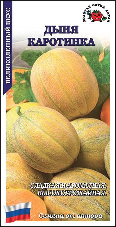 Сорт среднеранний. Срок созревания около 70 дней. Растение плетистое. Плоды овальной формы, желтые, сегментированные, гладкие, со сплошной толстой сеткой, массой 1,3-2,0 кг. Мякоть темно-оранжевая, средней толщины, хрустящая, сочная, очень сладкая и ароматная. Сорт ценится за высокую урожайность и великолепные вкусовые качества.