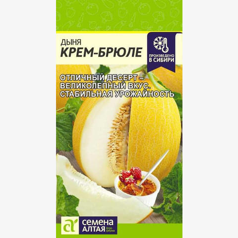 Мякоть тает во рту! Сорт среднеспелый, урожайный и транспортабельный. Растение длинноплетистое. Дыньки одна к одной – овальные, гладкие, желто-оранжевые, массой 1,3-1,8 кг. Мякоть кремовая, сладкая, очень ароматная. Сорт простой в агротехнике. Место посадки: предпочитает плодородные рыхлые нейтральные почвы. Размещают после капусты, лука, бобовых. Не рекомендуется сеять после других растений семейства тыквенных (тыква, огурец, кабачок, арбуз), подсолнечника, картофеля Освещение: обильное, переносит легкое затенение Предпосевная подготовка: семена замачивают в 0,5% растворе марганцовки на 15 минут. Допускается предварительное проращивание во влажной ткани или посев сухими семенами без подготовки Сроки посева: на рассаду за 20-25 дней до высадки (апрель-май), в открытый грунт после прогревания почвы до 15..18°С на глубине 15 см (май-июнь) Посев на рассаду: семена раскладывают на выровненный уплотненный теплый очень влажный грунт в рассадные ящики или индивидуальные емкости объемом 0,5 л. Присыпают слоем почвы 0,8-1 см и хорошо уплотняют, аккуратно поливают теплой водой, накрывают пленкой. Пророщенные семена присыпают рыхлым грунтом без уплотнения Посев в грунт: семена раскладывают на теплый увлажненный грунт, присыпают землей на 1-1,5 см и хорошо уплотняют, накрывают пленкой (пророщенные семена не уплотняют, присыпают слоем земли 2,5-3,0 см) Пикировка/перевалка: рассаду высаживают, когда минует угроза возвратных заморозков (май-июнь), в возрасте 3-4 настоящих листьев. В открытом грунте дыню высаживают по схеме 100х100 см, в теплицах — 70х70 см с использованием шпалер. На приусадебных участках возможно выращивание дыни путем её прививки на тыкву Уход: почва под растениями всегда должна оставаться увлажненной. Подкормки проводят при наличии симптомов дефицитов питания. При выращивании в теплице необходимо обеспечивать проветривание