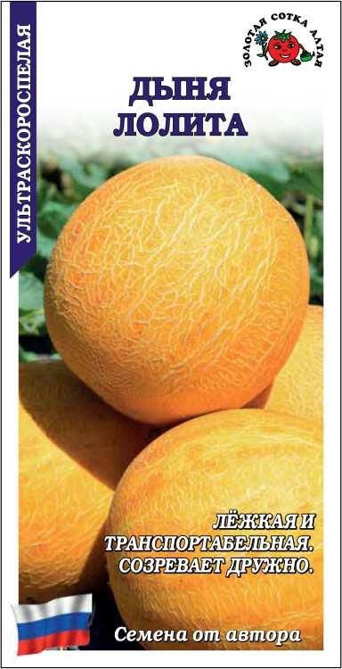 Сорт ультраскороспелый, очень урожайный, транспортабельный и лежкий, созревает дружно. От полных всходов до первого сбора 56-60 дней. Плоды округлые, массой 1-2 кг, ярко-желтые с крупными оранжевыми пятнами, скрытыми густой поверхностной сеткой. Мякоть светло-желтая, среднеплотная, сочная и нежная, тающая, великолепного сладкого вкуса.