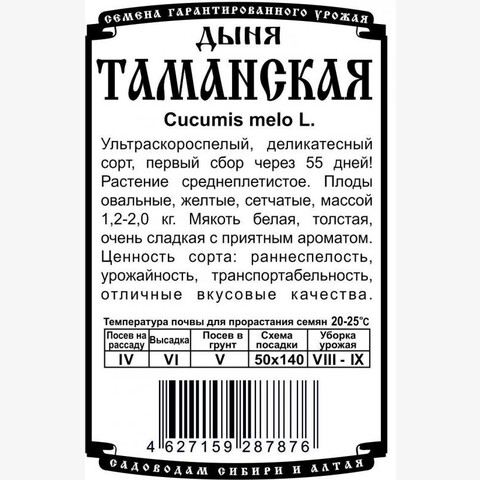 Ультраранний, деликатесный сорт, первый сбор через 55 дней! Растение среднеплетистое. Плоды овальные, желтые, сетчатые, массой 1,2-2,0 кг. Мякоть белая, толстая, очень сладкая с приятным ароматом. Ценность сорта: раннеспелость, урожайность, транспортабельность, отличные вкусовые качества.