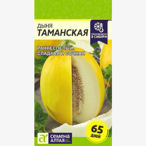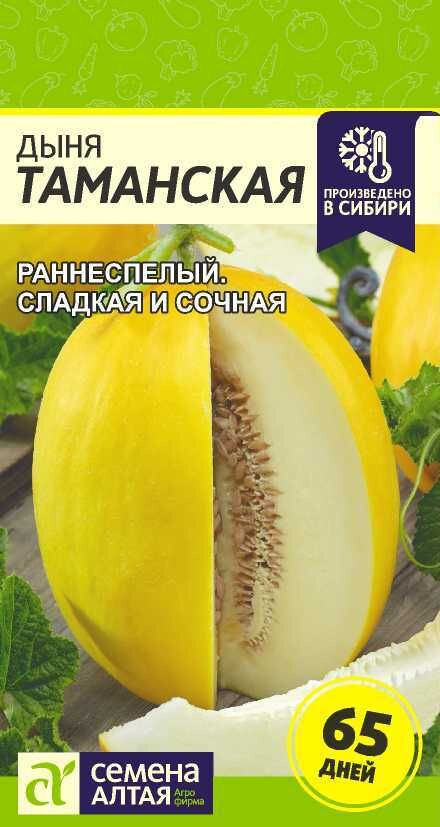 Раннеспелый сорт (53-80 дней) для выращивания в открытом грунте. Плоды овальные, желтые, гладкие, массой 0,5-1,5 кг. Мякоть кремовая, рассыпчатая, сочная, сладкая. Ценность сорта: дружное созревание и хорошая транспортабельность плодов. Место посадки: предпочитает плодородные рыхлые нейтральные почвы. Размещают после капусты, лука, бобовых. Не рекомендуется сеять после других растений семейства тыквенных (тыква, огурец, кабачок, арбуз), подсолнечника, картофеля Освещение: обильное, переносит легкое затенение Предпосевная подготовка: семена замачивают в 0,5% растворе марганцовки на 15 минут. Допускается предварительное проращивание во влажной ткани или посев сухими семенами без подготовки Сроки посева: на рассаду за 20-25 дней до высадки (апрель-май), в открытый грунт после прогревания почвы до 15..18°С на глубине 15 см (май-июнь) Посев на рассаду: семена раскладывают на выровненный уплотненный теплый очень влажный грунт в рассадные ящики или индивидуальные емкости объемом 0,5 л. Присыпают слоем почвы 0,8-1 см и хорошо уплотняют, аккуратно поливают теплой водой, накрывают пленкой. Пророщенные семена присыпают рыхлым грунтом без уплотнения Посев в грунт: семена раскладывают на теплый увлажненный грунт, присыпают землей на 1-1,5 см и хорошо уплотняют, накрывают пленкой (пророщенные семена не уплотняют, присыпают слоем земли 2,5-3,0 см) Пикировка/перевалка: рассаду высаживают, когда минует угроза возвратных заморозков (май-июнь), в возрасте 3-4 настоящих листьев. В открытом грунте дыню высаживают по схеме 100х100 см, в теплицах — 70х70 см с использованием шпалер. На приусадебных участках возможно выращивание дыни путем её прививки на тыкву Уход: почва под растениями всегда должна оставаться увлажненной. Подкормки проводят при наличии симптомов дефицитов питания. При выращивании в теплице необходимо обеспечивать проветривание