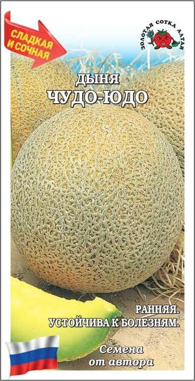 Высокоурожайный сорт с хорошей устойчивость к болезням, засухе и повышенным температурам. Период от массовых всходов допервого сбора 72-88 дней. Растение плетистое. Плоды красивого внешнего вида, округлой формы, массой 1,3-1,6 кг (до 2,5 кг). Поверхность желтая с густой белой сеткой. Мякоть светло-кремовая со слегка зеленоватым оттенком возле коры, нежная, тающая, сладостью и сочностью подобна арбузу, прекрасно утоляет жажду. Аромат гармоничный, легкий. Сорт рекомендуется для непосредственного потребления, приготовления варенья, джемов и цукатов.