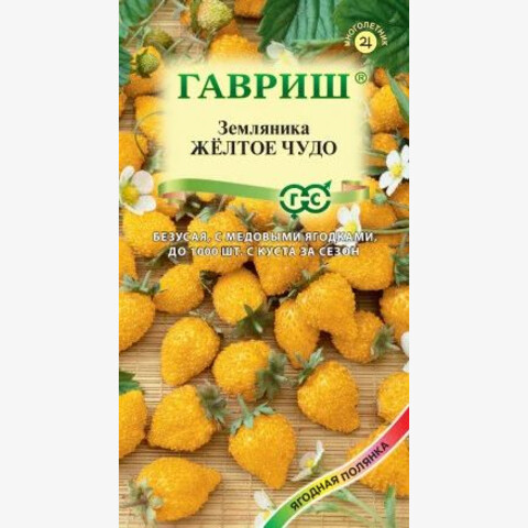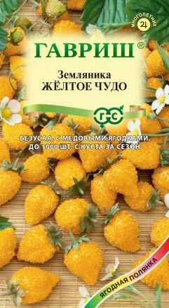 Уникальный сорт зимостойкой земляники, не образует усов, непрерывно плодоносит весь сезон. При регулярной подкормке и поливе дает до 1000 ягод с куста. Ягоды светло-желтые, по вкусу и аромату превосходят все красноплодные сорта. Устойчив к вредителям и болезням, ягоды не склевываются птицами (из-за цвета). Можно выращивать как горшечную культуру в домашних условиях или на балконе, тогда плодоношение продолжается весь год. Посев земляники производят в марте-апреле. Семена смешивают с песком и равномерно распределяют по увлажненной ровной поверхности. Всходы появляются в течение 30 дней. В фазе 1-2 настоящих листьев саженцы пикируют в горшочки. После появления 6 настоящих листьев высаживают в грунт с расстоянием между рядами 25-30 см, между растениями 15-20 см. Сбор урожая начинают с июля.
