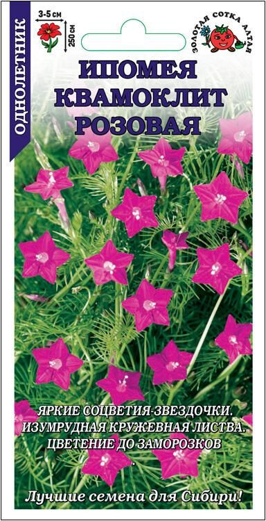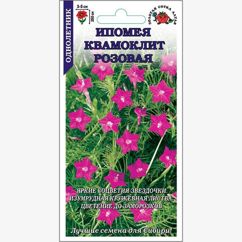 Изящное быстрорастущее растение, способное стремительно взбираться вверх, обвиваясь вокруг опоры тонкими стеблями, и создавать плотные ширмы, скрывая Вас от любопытных глаз соседей, затеняя веранды и террасы или маскируя неприглядные постройки. Изумрудная кружевная листва, декоративная сама по себе, в период цветение вспыхивает розовыми звездочками, что делает растение невероятно красивым. Цветет до заморозков. Используется для вертикального озеленения не только в саду, но и на балконах и лоджиях.