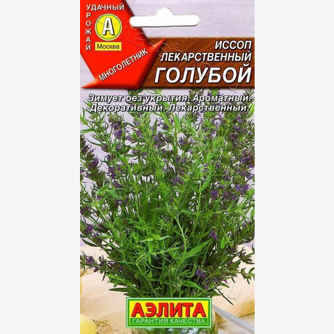 Многолетний полукустарник пряно-ароматической группы. Ценится за приятный интенсивный аромат, высокую декоративность, лекарственные, медоносные и пищевые качества. Сорт раннеспелый, с момента весеннего отрастания до начала цветения 80-85 дней. Формирует плотный куст высотой 50 см. Урожайность зелени 3-3,5 кг/м2. Вредителями и болезнями практически не поражается, зимует без укрытия. Листья и молодые побеги используют в свежем и сушеном виде в качестве приправы к разнообразным блюдам. Эфирное масло иссопа обладает антимикробным и противовирусным действием.