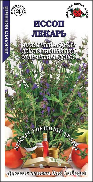 Пряный, эфиромасличный и медоносный полукустарник, именуемый также священной травой и пчелиной травой. Сорт среднеспелый, до уборки на зелень около 50 дней, на специи – 100-105 дней. Куст ветвистый, облиственный, высотой до 60 см. Лист средний, темно-зеленый, с приятным ароматом и горько-пряным вкусом. Цветы мелкие, голубые. Используют в свежем и сушеном виде как приправу, при консервировании и в гомеопатии.
