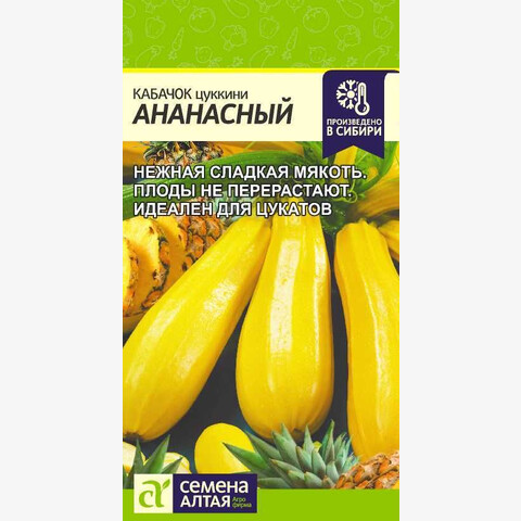 Раннеспелый (40-55 дней) высокоурожайный сорт цуккини. Растение кустовое, компактное. Плоды цилиндрические, золотисто-желтые, массой 0,6-0,8 кг, не перерастают. Мякоть желтая, нежная, сладковатого вкуса, сочная. Рекомендуется для использования в кулинарии, из них получаются великолепные консервированные ананасы. Место посадки: легкие плодородные нейтральные почвы. Лучшими предшественниками являются крестоцветные (разные виды капусты), пасленовые Освещение: освещенные участки, хорошо переносят затенение Предпосевная подготовка: не требуется. Для улучшения всхожести выбирают семена возрастом 3-5 лет, замачивают в 1% растворе марганцовки на 15 минут Сроки посева: при прогревании почвы до 12-15°C. Растение не переносит заморозков Посев на рассаду: для получения ранней продукции кабачки сеют на рассаду поздней весной, за две-три недели до высадки. Посев в грунт: посев проводят, когда почва прогреется до 10-12°C (апрель-июнь). В лунку насыпают перегной, который немного присыпают землей, укладывают 2-3 семени и засыпают торфоземляной смесью. Схема посадки 100х100 см, глубина заделки семян 3-5 см. При раннем посеве в открытый грунт необходимо временное укрытие пленкой Пикировка/перевалка: рассаду закаливают, высадку проводят при среднесуточной температуре не ниже 15°C. Растения высаживают без повреждения земляного кома на высоту корневой шейки, без заглубления. Первые 3-5 дней притеняют Уход: для получения наиболее высокого урожая рекомендуется регулярно проводить рыхление почвы и умеренные поливы. В период цветения-налива плодов рекомендуется провести подкормку комплексными минеральными удобрениями. Не требует формировки Сбор урожая: проводится выборочно, по мере достижения плодами технической зрелости