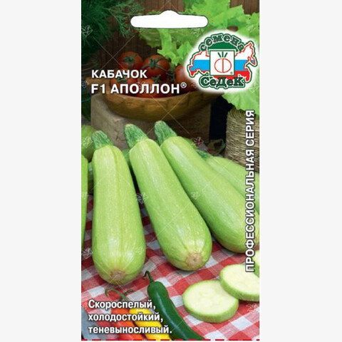 Скороспелый (38-41 день) гибрид. Растение кустовое, густооблиственное, мощное. Плоды удлиненно-цилиндрические, светло-зеленые в белую крапинку, длиной 35-45 см, массой 0,9-1,1 кг. Мякоть белая, плотная, с высокими вкусовыми качествами. Ценность гибрида: устойчивость к мучнистой росе, холодостойкость и теневыносливость, высокая отдача урожая в любое лето, на одном растении формируется 8-10 плодов. Подходит для крупнотоварного производства. Рекомендуется для кулинарной переработки, особенно хороши для приготовления икры и для консервирования.