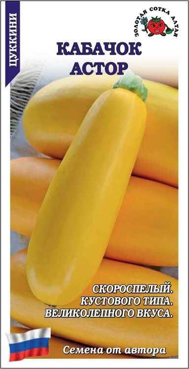 Скороспелый высокоурожайный сорт. От полных всходов до первого сбора 32-38 дней. Растение кустовое, компактное, с неколючим стеблем, женского типа цветения. Плоды ярко-желтые, коротко-цилиндрической формы, гладкие, в технической спелости массой 0,9-1,5 кг. Мякоть жёлтая, средней плотности и сочности, нежная, с высокими вкусовыми качествами. Сорт используется в домашней кулинарии и для всех видов переработки.