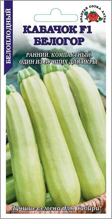 Раннеспелый высокоурожайный гибрид. Куст компактный, главный побег короткий. Плоды зеленовато-белые, гладкие, цилиндрические, в технической спелости массой 0,5-1,0 кг. Кора тонкая, деревянистая. Мякоть белая, плотная, нежная, отличного вкуса. Гибрид используется в домашней кулинарии, особенно хорош для консервирования и приготовления кабачковой икры.