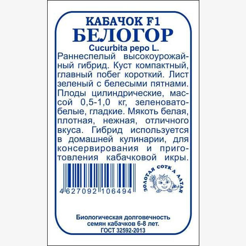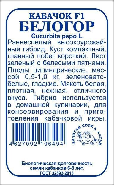 Кабачок Белогор БП/ Сотка