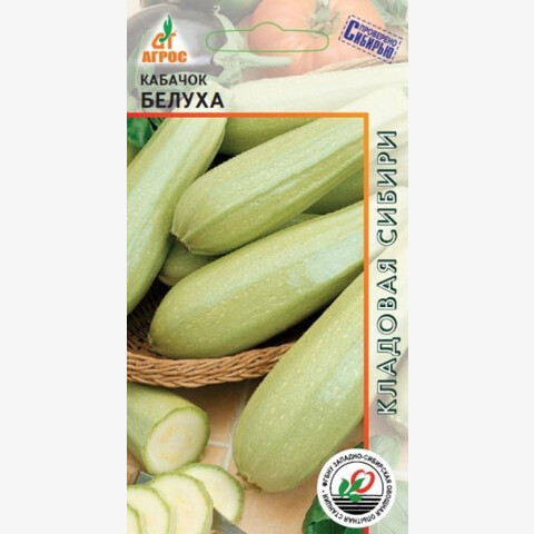 Скороспелый сорт алтайских селекционеров. Растение кустовое, компактное. Плоды удлиненно-элипсовидной формы. Окраска плодов светло-зеленая с крапчатой пятнистостью в виде полосок. Масса плода 0,5-1,2 кг. Мякоть белая, толщиной до 2 см, нежная и сочная. Сорт устойчив к бактериозу и ложной мучнистой росе. Хорошо переносит неблагоприятные погодные условия. Особенности выращивания: уборку плодов кабачка проводят регулярно – 1-2 раза в неделю по мере достижения технической спелости. Чем чаще собирать плоды, тем больше образуется завязей. Для длительного хранения плоды оставляют на растении до биологической спелости и собирают до наступления заморозков. - IV V-VI V-VI 70x70 VII-VIII