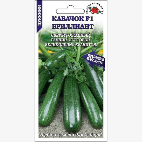 Гибрид ранний, сверх урожайный: одновременно формирует до 6 плодов, за сезон дает 20 и более плодов с куста. Срок созревания 40-47 дней. Растение кустовое, открытого типа, что облегчает сбор урожая. Плоды цилиндрические без сбега к плодоножке, длиной до 30 см, зеленые или темно-зеленые. Кожура тонкая. Мякоть нежная, плотная, очень вкусная. Семена мелкие, слаборазвитые. Гибрид великолепно хранится, используется в кулинарии, для приготовления икры и маринования.