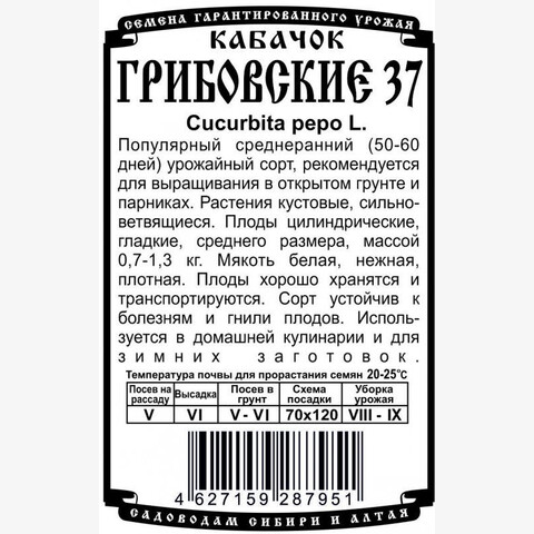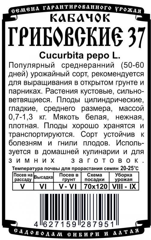 Популярный среднеранний (50-60 дней) урожайный сорт, рекомендуется для выращивания в открытом грунте и парниках. Растения кустовые, сильноветвящиеся. Плоды цилиндрические, гладкие, среднего размера, массой 0,7-1,3 кг. Мякоть белая, нежная, плотная. Плоды хорошо хранятся и транспортируются. Сорт устойчив к болезням и гнили плодов. Используется в домашней кулинарии и для зимних заготовок.