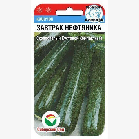 Очень ранний, скороспелый сорт цуккини. Растение кустовое, компактное, открытого типа, что позволяет легко проводить сбор урожая. Хорошо завязывает плоды и имеет длительный период плодоношения. Плод цилиндрический, темнозеленый, глянцевый, длиной 20-25 см. Мякоть очень нежная, отличного вкуса. Транспортабельный илежкий сорт. Выращивается через рассаду либо прямым посевом семян в грунт. Посев: семенами в хорошо заправленную органикой почву на глубину 4—6 см или 25-дневной рассадой при температуре почвы не менее 15°С. Уход: 2-3 рыхления междурядий, прополки, подкормки, поливы теплой водой, особенно во время цветения и плодоношения. Оптимальная температура для роста и развития растений 18—25°С. Необходимая защита от заморозков. Сбор урожая: 1-2 раза в неделю, не допуская перерастания плодов (15—20 см).
