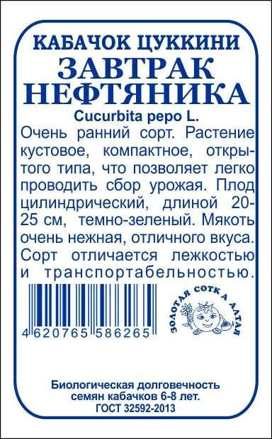 Очень ранний высокоурожайный сорт. Растение кустовое, компактное, открытого типа, что облегчает сбор урожая. Плоды цилиндрической формы, длиной 20-25 см, темно-зеленой окраски. Кора тонкая, но прочная. Мякоть толстая, очень нежная, отличных вкусовых качеств. Сорт отличается хорошей лежкостью и транспортабельностью, используется в кулинарии и для переработки.