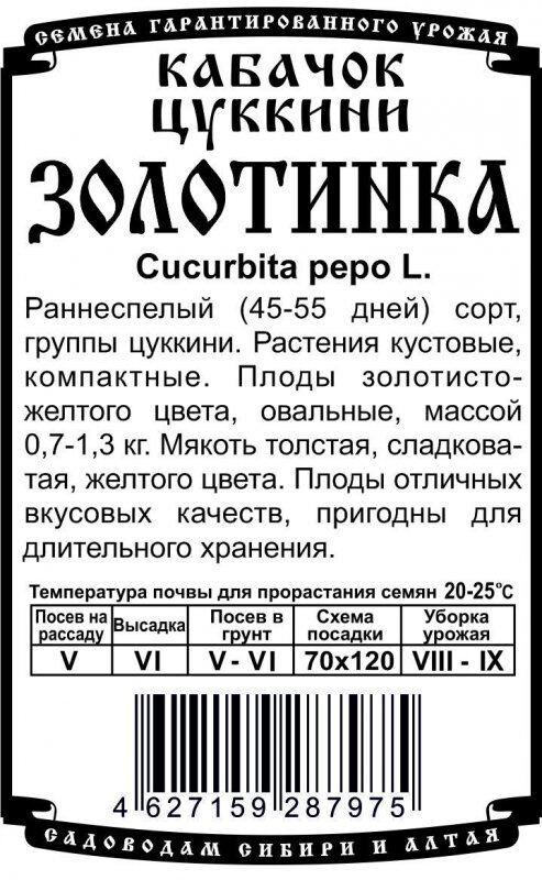 Раннеспелый сорт, вступает в плодоношение на 45-55 день с момента появления всходов. Растение кустовое, компактное. Зрелый плод золотисто-желтого цвета, овальный, массой 0,7-1,3 кг. Мякоть толстая, сладковатая, желтого цвета. Плоды отличных вкусовых качеств, пригодны для длительного хранения.