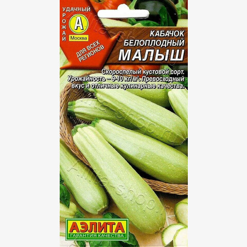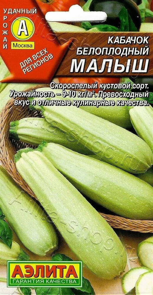 Скороспелый, высокоурожайный сорт, вступает в плодоношение на 38-47 день от всходов. Растения кустовые. Плоды цилиндрические, длиной до 20 см, гладкие, массой 0,6-1,0 кг. Мякоть светлая, плотная, с превосходным вкусом. Обладает великолепными кулинарными качествами, рекомендуется для приготовления диетического питания, икры и консервирования. Урожайность высокая – 9-10 кг/ м2.