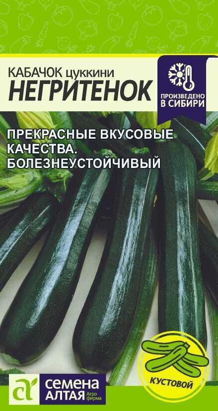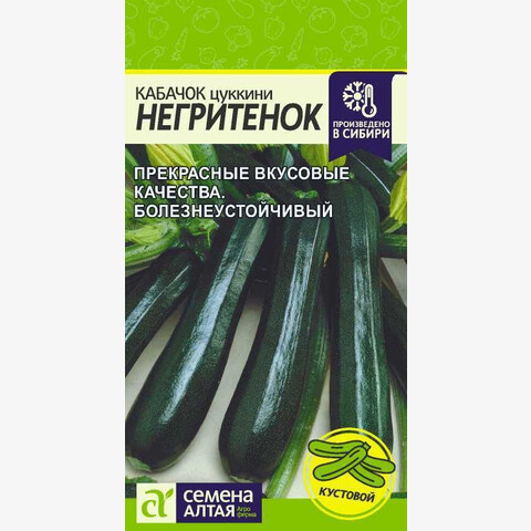 Раннеспелый сорт. От всходов до созревания 38-40 дней. Растение кустовое, плоды цилиндрические, темно-зеленые, массой 0,4-0,9 кг. Отличные вкусовые качества. Ценность сорта: устойчивость к мучнистой росе, раннеспелость, высокие вкусовые качества. Место посадки: легкие плодородные нейтральные почвы. Лучшими предшественниками являются крестоцветные (разные виды капусты), пасленовые Освещение: освещенные участки, хорошо переносят затенение Предпосевная подготовка: не требуется. Для улучшения всхожести выбирают семена возрастом 3-5 лет, замачивают в 1% растворе марганцовки на 15 минут Сроки посева: при прогревании почвы до 12-15°C. Растение не переносит заморозков Посев на рассаду: для получения ранней продукции кабачки сеют на рассаду поздней весной, за две-три недели до высадки. Посев в грунт: посев проводят, когда почва прогреется до 10-12°C (апрель-июнь). В лунку насыпают перегной, который немного присыпают землей, укладывают 2-3 семени и засыпают торфоземляной смесью. Схема посадки 100х100 см, глубина заделки семян 3-5 см. При раннем посеве в открытый грунт необходимо временное укрытие пленкой Пикировка/перевалка: рассаду закаливают, высадку проводят при среднесуточной температуре не ниже 15°C. Растения высаживают без повреждения земляного кома на высоту корневой шейки, без заглубления. Первые 3-5 дней притеняют Уход: для получения наиболее высокого урожая рекомендуется регулярно проводить рыхление почвы и умеренные поливы. В период цветения-налива плодов рекомендуется провести подкормку комплексными минеральными удобрениями. Не требует формировки Сбор урожая: проводится выборочно, по мере достижения плодами технической зрелости