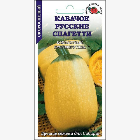 Скороспелый урожайный сорт. Растение кустового типа, компактное, с мягким опушением на листьях, что удобно при ручном сборе урожая. Плоды овальные, в технической спелости массой 0,6-0,8 кг, интересной двухцветной расцветки: в середине светло-желтые, у плодоножки и вершины – зеленые. Мякоть желтая, волокнистая, отличного нежного вкуса. Недозрелые плоды используются в кулинарии как обычные сорта, а для получения спагетти используют полностью вызревшие.