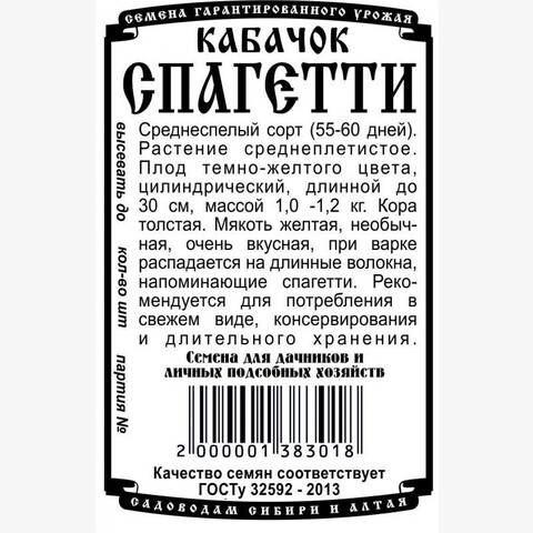 Кабачок Спагетти БП/ Деметра