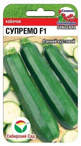 Раннеспелый (45-47 дней) высокоурожайный кустовой гибрид кабачка-цуккини с плодами идеально цилиндрической формы и продолжительным периодом плодоношения. Растение открытое, кустового типа, что значительно облегчает сбор урожая. Плоды темно-зеленые, идеально ровные, удлиненно-циллиндрические, длиной 20-22 см, высокотоварные, долго сохраняют форму и блеск при хранении и транспортировке. Мякоть светлая, нежная, средней плотности и сочности. Ровная форма плода отлично подходит для нарезки соте и заморозки. Гибрид рекомендуется для домашней кулинарии, заморозки и переработки, реализации на рынке ранней свежей продукции. Устойчив к вирусу огуречной мозаики. Стабильная высокая урожайность.