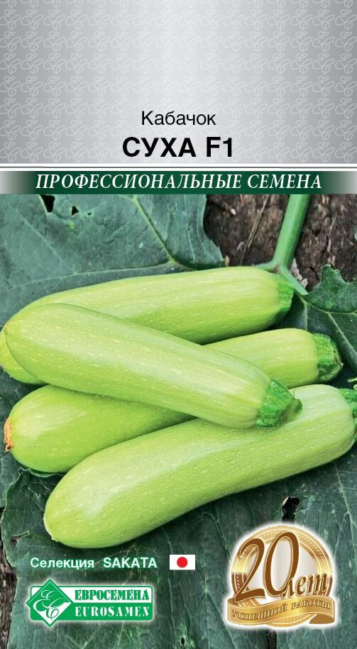 Согласно легенде, кабачки подарил людям Бог. Давным-давно женщины рыбацкой деревни, проводив своих мужей в море, обратились к Богу с молитвой подарить им плод, мякоть которого был бы как у рыбы, цвет - как у моря в лунную ночь, а кожура такая же, как панцирь черепахи. В ответ на их мольбу Бог подарил им кабачок. С тех пор кабачки - частые гости за столом у тех, кто следит за своей фигурой и соблюдает диетическое питание. Кабачок Суха - ранний гибрид светло-зеленого кабачка, период созревания 35 дней. Потенциальный урожай очень высок, так как количество сборов сильно возрастает благодаря устойчивости к целому ряду вирусов. Прямостоячее открытое растение облегчает сбор урожая и не позволяет плодам ложиться на землю. Длина корнеплода 12-15 см. Используется для переработки и свежего потребления.