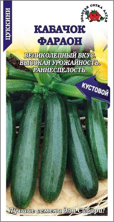 Раннеспелый высокоурожайный сорт, устойчивый к серой гнили плодов. Срок созревания 39-43 дня. Растение кустовое, компактное, главная плеть длиной 47-50 см. Плоды цилиндрической формы, гладкие, в технической спелости массой 0,7-0,9 кг, темно-зеленые с мелкими светлыми точками. Кора средней толщины. Мякоть желтая, хрустящая, сочная, нежная и очень сладкая, великолепного вкуса. Используют в кулинарии и для переработки.
