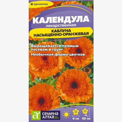 Яркий однолетник с замечательным сочетанием ценных характеристик: высокие декоративные качества, целебные свойства, продолжительный период цветения. Неприхотливость и холодостойкость позволяют выращивать календулу повсеместно. Растение кустовой формы ветвистое высотой до 50 см с прямостоячими побегами, увенчанными очаровательными соцветиями приятной насыщенно-оранжевой окраски диаметром до 6 см, обладающими специфическим освежающим ароматом. Великолепно смотрится в одиночных и групповых посадках на газонах, клумбах, в бордюрах, лекарственных садиках. Долго сохраняет свежесть и декоративность в срезке. Светолюбивое, холодостойкое и довольно неприхотливое растение. Выносит заморозки до -5?С. Наибольшей декоративности достигает на открытых солнечных участках с легкими плодородными дренированными почвами при достаточном увлажнении. Выращивают посевом семян в открытый грунт в конце апреля или под зиму. Глубина заделки семян 2-3 см. При температуре почвы +18°С всходы появляются через 10-14 дней, их прореживают с интервалом 20-30 см. Цветение начинается через 8-10 недель от появления всходов и длится с июля по сентябрь. Удаление увядших соцветий продляет сроки цветения.