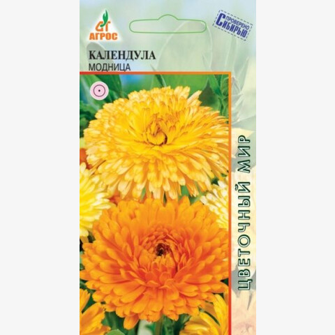 Однолетнее растение с компактным обильно цветущим кустом, соцветия-корзинки махровые, черепитчатые, диаметром 4-5 см, нежных пастельных оттенков. Во всех частях растения содержатся вещества, обладающие лечебными свойствами. Календула – растение крайне неприхотливое в культуре.холодостойко, светолюбиво, хорошо развивается на разных типах почв. Цветение начинается через 45 дней после посева. В сухую жаркую погоду соцветия мельчают, а махровость снижается, поэтому календулу необходимо поливать и подкармливать раз в 2 недели. Семена высевают сразу в открытый грунт с мая и до конца июня, а также под зиму. Всходы появляются через 10-14 дней. Используется в балконных ящиках, для групп, рабаток, бордюров, где она сочетается с агератумом, сальвией, дельфиниумом, рудбекиями, цинниями, а также как лекарственное и овощное растение. Соцветия хорошо стоят в срезке. 50 - V-VI;IX-X - 15x20 VI-IX