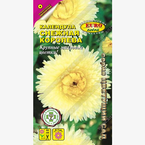 Календула – одно из самых неприхотливых и, в то же время, самых эффектных однолетних садовых растений. Отлично выглядит в больших массивах, бордюрах, в букетах. Соцветия – круглые корзинки, махровые, яркой кремово-белой окраски. Календула является ценным лекарственным растением, применяется в медицине как потогонное средство, а также для лечения ожогов и заживления ран.