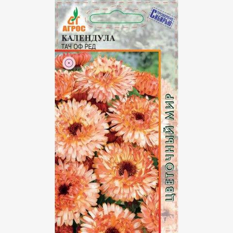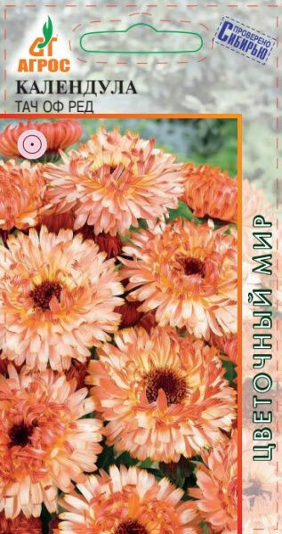 Растение однолетнее. Cоцветия-корзинки махровые, черепитчатые, диаметром 7-9 см. Во всех частях растения содержатся вещества, обладающие лечебными свойствами. Календула – растение крайне неприхотливое в культуре. Холодостойко, светолюбиво, хорошо развивается на разных типах почв. В сухую жаркую погоду соцветия мельчают, поэтому необходимо поливать и раз в две недели подкармливать. Семена высевают сразу в открытый грунт, а также под зиму. Всходы появляются через 10-14 дней. Используется в балконных ящиках, на срезку, для групп, рабаток, бордюров, где она сочетается с агератумом, сальвией, дельфиниумом, рудбекиями, цинниями и как овощное растение. 60 - V-VII, IX - 15x20 VI-IX