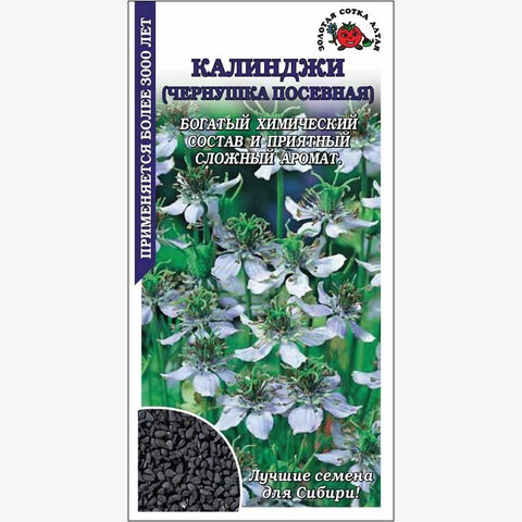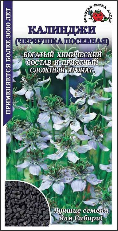 Декоративное растение, медонос, легенда Востока, где называется благословенным семенем, излечивающим от любой болезни, кроме смерти и используется уже более 3000 лет. Стебли прямые, ветвистые, листья ажурные, цветы бледно-голубые. У семян очень богатый химический состав, горьковато-острый вкус и сложный аромат с нотами перца, земляники и мускатного ореха. Используют в кулинарии, при консервировании и для ароматизации выпечки, готовят чай.