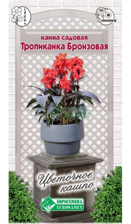 Канна садовая является ярким представителем растения, применяемого в ландшафтном дизайне. Крупные продолговатые листья красивы и украшают композицию до выбрасывания стрелки-цветоноса, а обильное цветение на высоком стебле в разных сочетаниях цветов и оттенков станет изюминкой любого уголка в саду. Это удивительно красивое и неприхотливое растение является эффектным цветком и очень любимо дачниками. Тропиканка Бронзовая- карликовый гибрид канны садовой, предназначенной в основном для контейнерных и горшечных посадок. Высота 60-75 см. Величественно и торжественно выглядит в центре клумб, среди газона, в контейнерах на балконе, веранде, патио. Можно высаживать вдоль заборов, стен, около крыльца, на берегу водоема. Компактность, красота и быстрое зацветание – главное преимущество этого вида.
