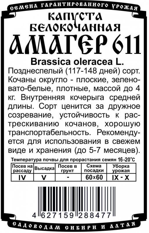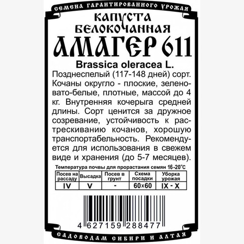 Капуста Амагер 611 БП/ Деметра 0,3гр