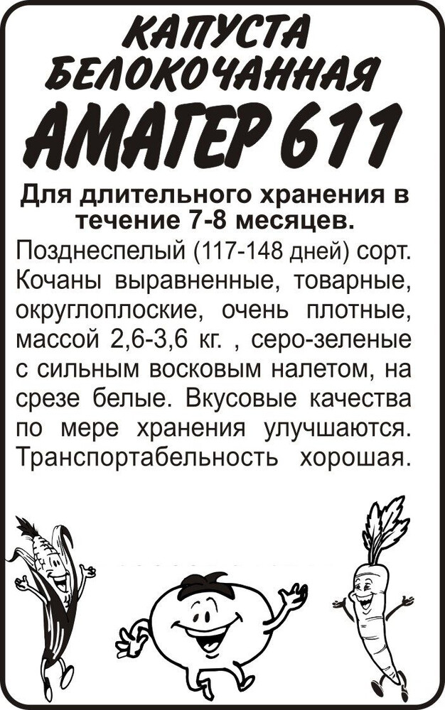Позднеспелый (117-148 дней) сорт. Кочаны выравненные, товарные, округло-плоские, очень плотные, небольшого размера, 2,5-4 кг, серо-зеленые с сильным серебристым восковым налетом, на разрезе белые. Предназначен для длительного хранения в течение 7-8 месяцев. Вкусовые качества по мере хранения улучшаются. Транспортабельность хорошая. Устойчив к растрескиванию кочанов. Место посадки: плодородные рыхлые почвы с нейтральной реакцией среды. Лучшие предшественники — бобовые, тыквенные, картофель, морковь, лук Освещение: обильное, не выносит затенения Предпосевная подготовка: семена замачивают в 0,5% растворе марганцовки на 15 минут. Для стимулирования прорастания замачивают на 20 минут в воде 45°С. Инкрустированные (цветные) семена сеют сухим способом, без замачивания и подготовки Сроки посева: на рассаду высевают за 45-55 дней до высадки (март-апрель), в открытый грунт после схода снега и прогревания почвы до 5-8°С (апрель-май) Посев на рассаду: семена размещают на уплотненном питательном грунте, присыпают слоем земли 2-2,5 см и хорошо уплотняют, обильно поливают теплой водой и накрывают пленкой. До появления всходов размещают в теплом месте +22-25°С. При появлении всходов рекомендовано снизить температуру до +13-15°С днем и +6-8°С ночью на 3-5 дней, для получения коренастых растений, затем снова перенести в теплое хорошо освещенное место. Посев в грунт: в зависимости от региона (апрель-июнь), на глубину 2,0-2,5 см по схеме 60х60 см Пикировка/перевалка: рассаду высаживают в возрасте 50-55 дней во влажную, удобренную почву. Посадочный интервал 60х60 см. После высадки растения притеняют первые 5-7 дней Уход: в течение всего сезона растениям необходимы регулярные обильные поливы, своевременные прополки, рыхление и подкормки азотными и калийными минеральными удобрениями. Хорошо отзывается на внесение микроудобрений, содержащих магний и бор