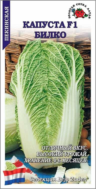 Гибрид среднеспелый (60-65 дней), высокоурожайный, устойчив к жаре, цветушности и болезням. Розетка листьев вертикальная. Кочаны продолговатые, массой 1,2-2,0 кг, темно-зеленые, на разрезе желтые, плотные и сочные, прекрасного вкуса. Используют в свежем виде и для хранения в течение 4-6 месяцев. Пекинская капуста богата легкоусваиваемыми белками, витаминами, минеральными солями, каротином.
