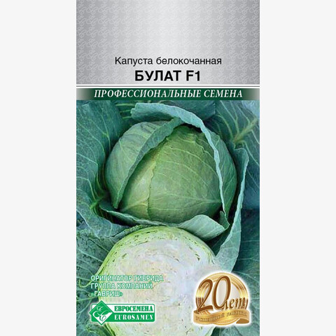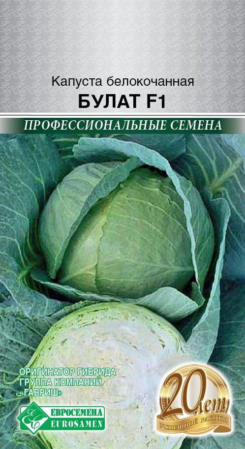 Полезные свойства капусты трудно переоценить. Капуста богата витаминами А, В1, Р, К, В6, U. Она – лидер среди овощей по содержанию витамина С, который сохраняется в капусте как при длительном хранении в сыром виде, так и при термической обработке. Булат- позднеспелый гибрид, рекомендованный для потребления в свежем виде и хранения, срок наступления технической спелости через 145-155 дней от высадки рассады. Лист среднего размера, серо-зеленый с сильным восковым налетом, гладкий, слабоволнистый по краю. Кочан овальный, частично покрытый, на разрезе зеленоватый. Плотность кочанов высокая (4-5 баллов). Масса кочана 2,5-3,0 кг, вкус хороший, отличается хорошим выходом товарной продукции, товарная урожайность: 413-518 ц/га. Гибрид пригоден для длительного хранения.