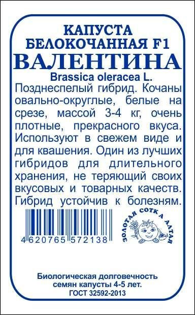Позднеспелый, устойчивый к болезням гибрид. От полных всходов до технической спелости кочанов 140-180 дней. Розетка листьев приподнятая. Кочаны овально-округлые, белые на срезе, массой 3-4 кг, очень плотные, отличного вкуса, с тонкой структурой и короткой внутренней кочерыгой. Один из лучших гибридов для длительного хранения, не теряющий своих вкусовых и товарных качеств, используется в свежем виде и для квашения. Устойчив к фузариозному увяданию.