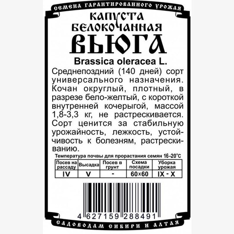 капуста Вьюга (0.3 гр Б/П) /Деметра