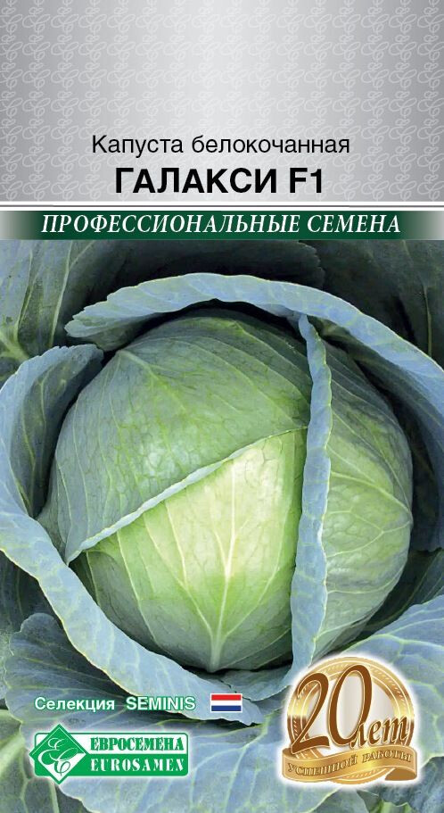 Полезные свойства капусты трудно переоценить. Капуста богата витаминами А, В1, Р, К, В6, U. Она – лидер среди овощей по содержанию витамина С, который сохраняется в капусте как при длительном хранении в сыром виде, так и при термической обработке. Галакси- позднеспелый (вегетативный срок 140-145 дней) гибрид капусты белокочанной для очень длительного хранения, рекомендуется также и для использования в свежем виде. Кочан округло-плоской формы, на разрезе желто-белого цвета, средней массы 4 кг, в зависимости от плотности посадки возможен вес от 3,2 до 4,6 кг, вкус хороший. Отличается высокой урожайностью, великолепной пластичностью, чрезвычайной стрессоустойчивостью, отличным выходом товарной продукции, хорошей полевой толерантностью к трипсам и альтернариозу, а также устойчивостью к растрескиванию.