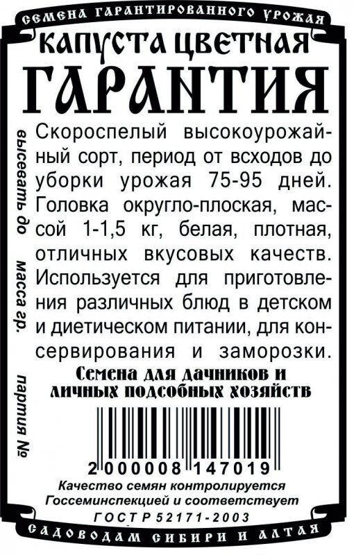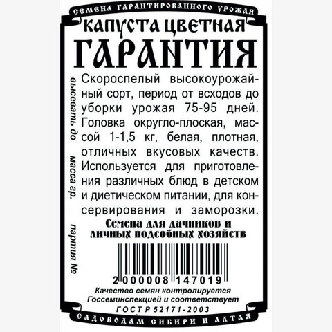 капуста Гарантия 0,2 гр Б/П/ Деметра