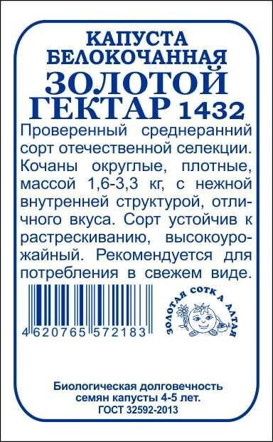 Капуста Золотой гектар б/п /Сотка/ 0,5г/ среднеран. 1,6-3,3кг/*1200