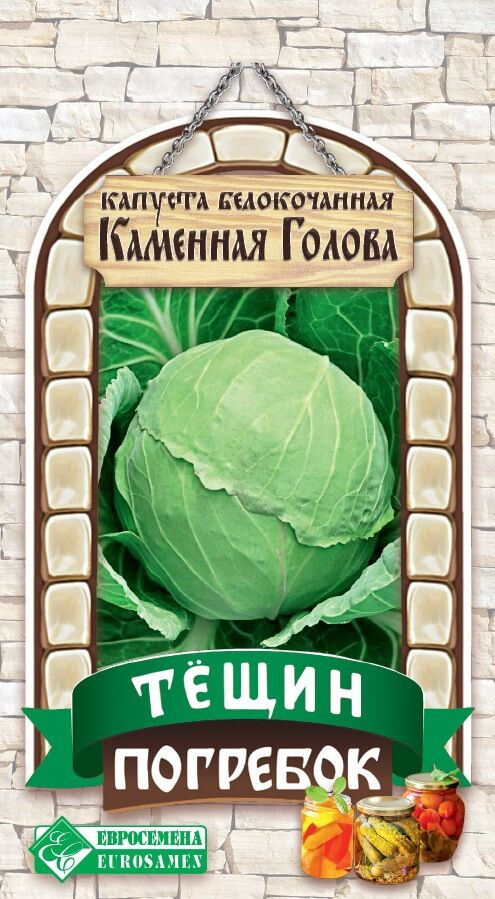 Заготовки на зиму - настоящее искусство, увлекательное и полезное, которое до сих пор остается самым актуальным у миллионов хозяек. Сделанные своими руками закрутки гораздо вкуснее магазинного ассортимента, ведь они адаптированы под вкусы своей семьи и являются желанными на любом столе. Серия Тещин Погребок - это отличный способ сохранить собранные овощи до глубокой зимы и даже до следующей весны. Она скомплектована из подходящих сортов и гибридов для домашнего консервирования, нужно просто закрутить их в банки, добавив различные ингредиенты для улучшения вкуса и продления сроков хранения. Каменная Голова- позднеспелый сорт. Кочаны округлые и плотные, массой 4 кг, не растрескиваются, на разрезе белые. Рекомендуется гибрид для всех видов переработки и длительного хранения.