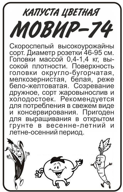 Скороспелый высокоурожайный сорт. Диаметр розетки 46-95 см. Головки массой 0,4-1,4 кг, высокой плотности. Поверхность головки округло-бугорчатая, мелкозернистая, белая, реже бело-желтоватая. Созревание дружное, сорт жаровынослив и холодостоек. Рекомендуется для потребления в свежем виде и консервирования. Пригоден для выращивания в открытом грунте в весенне-летний и летне-осенний период. Место посадки: плодородные рыхлые почвы с нейтральной реакцией среды. Лучшие предшественники — бобовые, тыквенные, картофель, морковь, лук Освещение: обильное, не выносит затенения Предпосевная подготовка: семена замачивают в 0,5% растворе марганцовки на 15 минут. Для стимулирования прорастания замачивают на 20 минут в воде 45°С. Инкрустированные (цветные) семена сеют сухим способом, без замачивания и подготовки Сроки посева: на рассаду высевают за 35-45 дней до высадки (март-апрель), в открытый грунт после схода снега и прогревания почвы до 5-8°С (апрель-май) или в середине июля Посев на рассаду: семена размещают на уплотненном питательном грунте, присыпают слоем земли 2-2,5 см и хорошо уплотняют, обильно поливают теплой водой и накрывают пленкой. До появления всходов размещают в теплом месте +22-25°С. При появлении всходов рекомендовано снизить температуру до +13-15°С днем и +6-8°С ночью на 3-5 дней, для получения коренастых растений, затем снова перенести в теплое хорошо освещенное место Пикировка/перевалка: рассаду высаживают в возрасте 35-40 дней во влажную, удобренную почву. Посадочный интервал 60х60 см. После высадки растения притеняют первые 5-7 дней Уход: В течение всего сезона растениям необходимы регулярные обильные поливы, своевременные прополки, рыхление и подкормки. После появления головок их притеняют, скрепляя 2-3 листа над образовавшимся соцветием