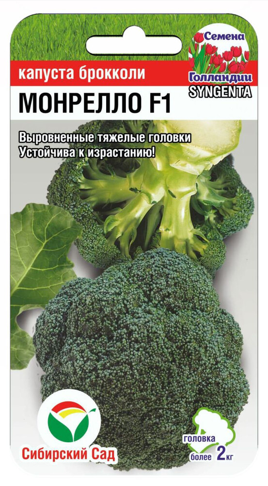 Среднеспелый гибрид. Созревает через 100 дней от высадки рассады. Головки плотные, тяжелые, в среднем 2 и более кг. Не перерастают на корню, что позволяет длительное время использовать свежую брокколи. Хорошо хранится. Устойчив к основным болезням капусты. Отлично подходит для заморозки и хранения.